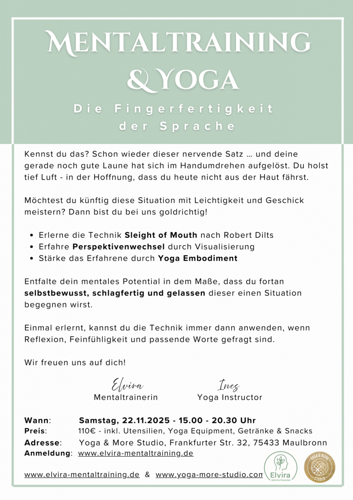 - eine Lösung findest, schlagfertig und gelassen mit der Situation umzugehen